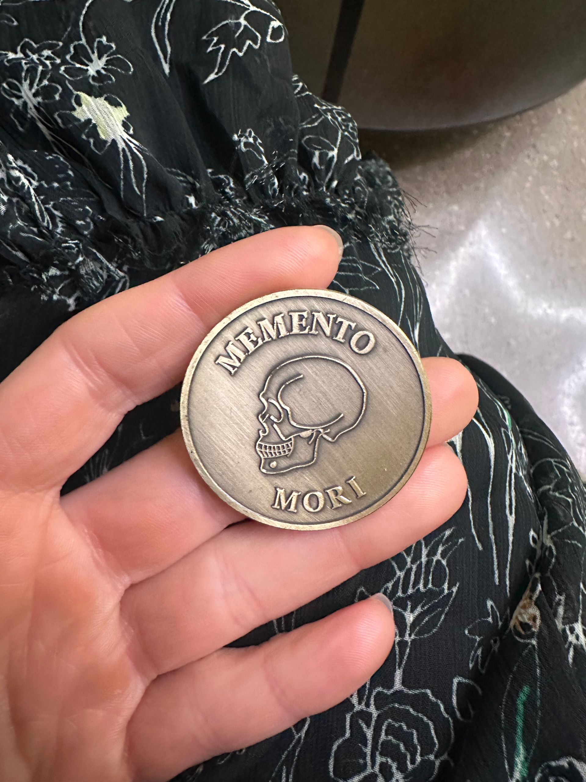 It was a coin. With a skull and crossbones. That literally said memento mori.